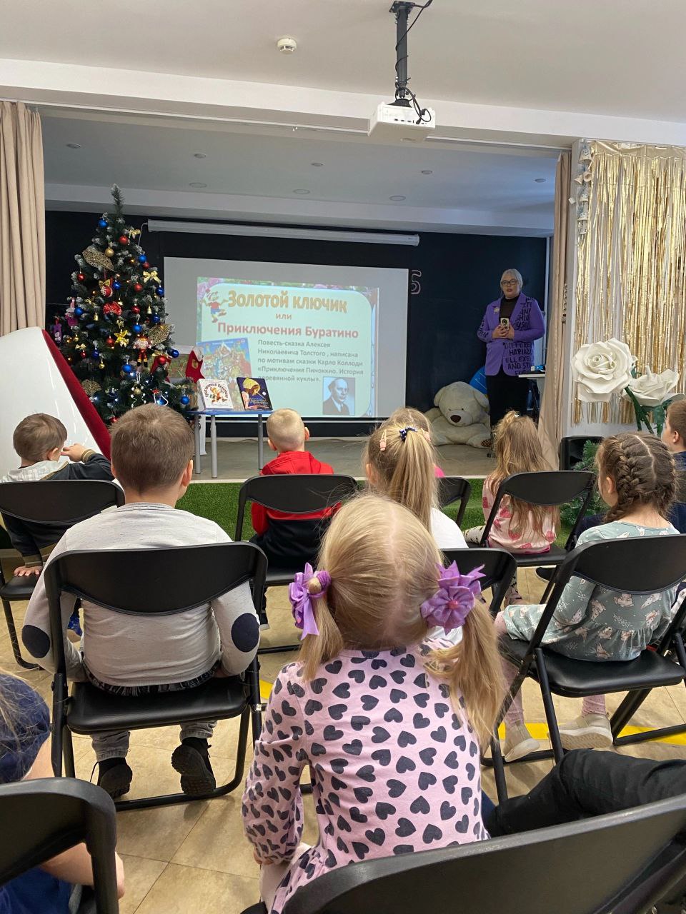 Буратино – озорной, добрый сказочный мальчишка, с которым постоянно происходят самые невероятные приключения. Юные гости познакомились с историей возникновения персонажа Буратино, узнали биографию писателя Алексея Толстого, отгадали тематические загадки, закрепив свои знания в занимательной игре «В поисках золотого ключика».