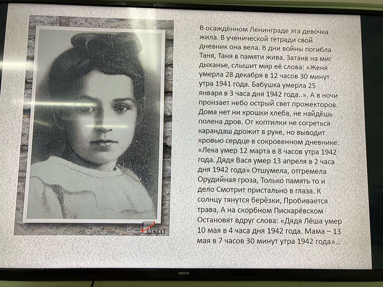 Очень впечатлила ребят печально известная история 11-летней ленинградской девочки Тани Савичевой. Еще большее впечатление на ребят произвел кусочек хлеба в 125 грамм.