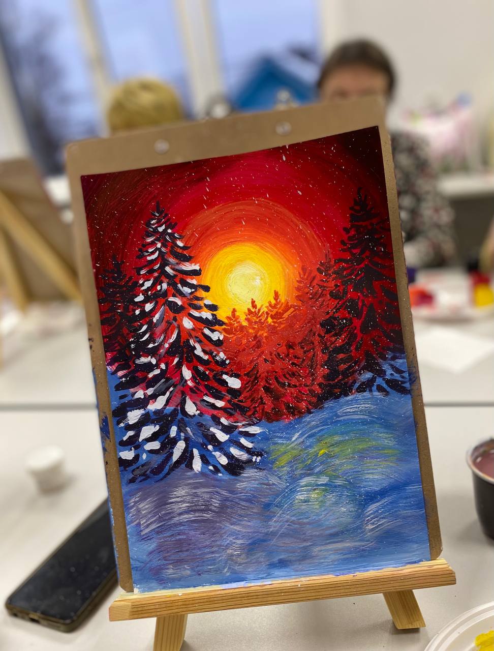 Прикоснулись к прекрасному: в библиотеке в рамках клуба «Вдохновение» прошёл мастер-класс по живописи «Зимние мотивы».