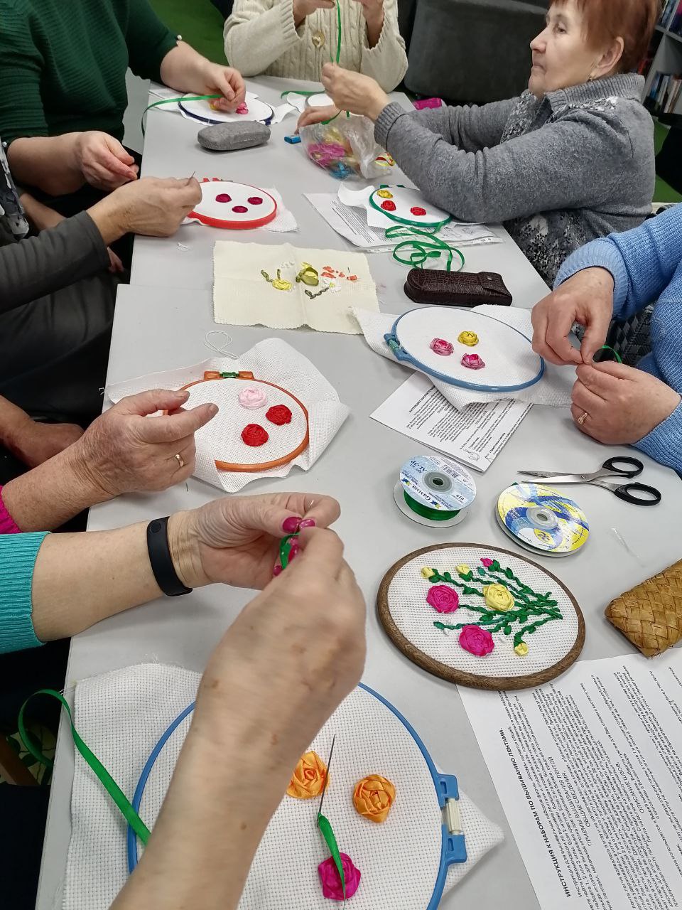 В Мошинской библиотеке в рамках клуба "Рукодельницы" прошел мастер-класс в технике вышивание лентами.