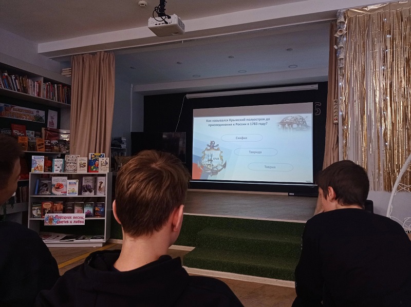 14 марта в библиотеке мкр. Каргополь-2 прошла тематическая программа видео-круиз «Путешествие по Крымскому полуострову», посвященная Дню воссоединения Крыма с Россией для учащихся 7 и 8 класса МБОУ СШ2 ОШ 4.