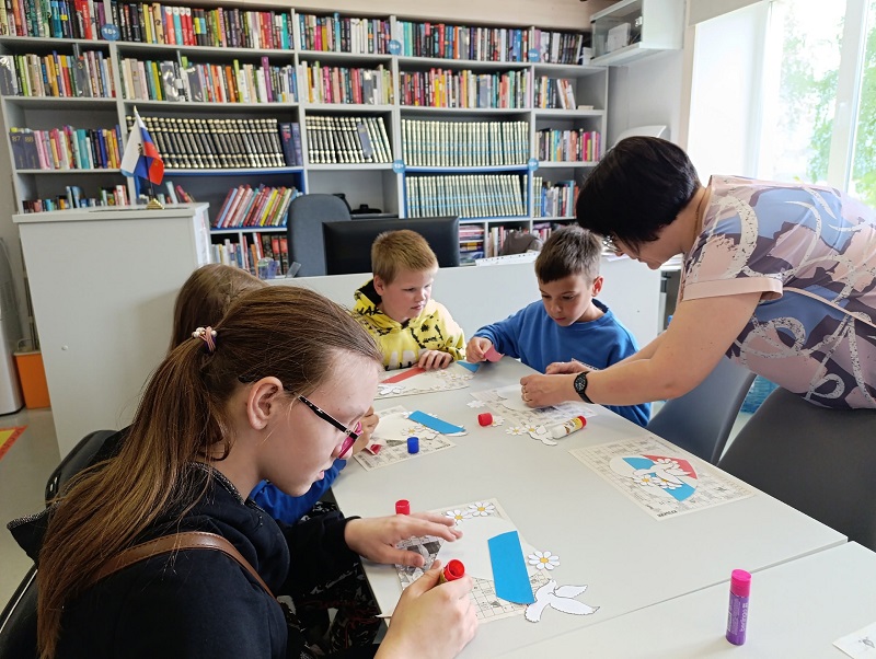 В Мошинской библиотеке для ребят 2 отряда школьного лагеря прошел мастер-класс "Открытка к Дню России". Дети создали яркие и красочные открытки, посвященные этому знаменательному событию. Затем ребята посмотрели познавательный мультфильм "Мульти-Россия", который помог им познакомиться с разнообразием культур и традиций нашей страны.