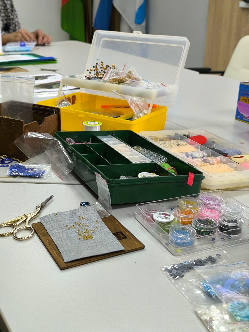 Участницы, вооружившись бисером, бусинами, пайетками и, конечно же, фантазией, и начали создавать настоящие произведение искусства.