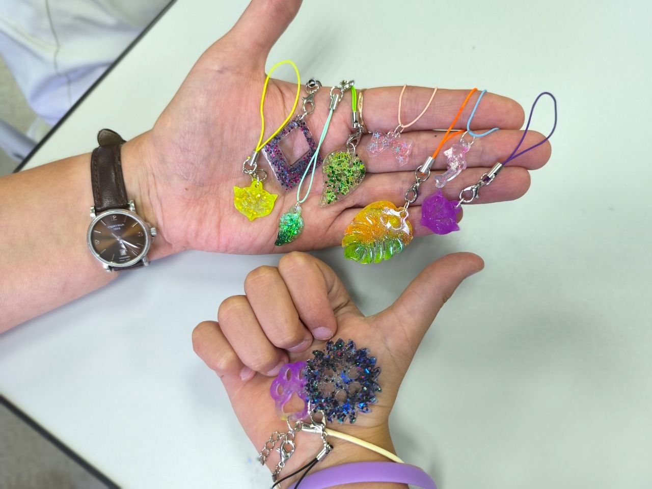 И вот, в руках у каждого уже не просто бесцветная жидкость, а основа для будущего шедевра. Добавляя пигменты, глиттеры, сухоцветы и миниатюрные предметы, участники создавали неповторимые украшения.