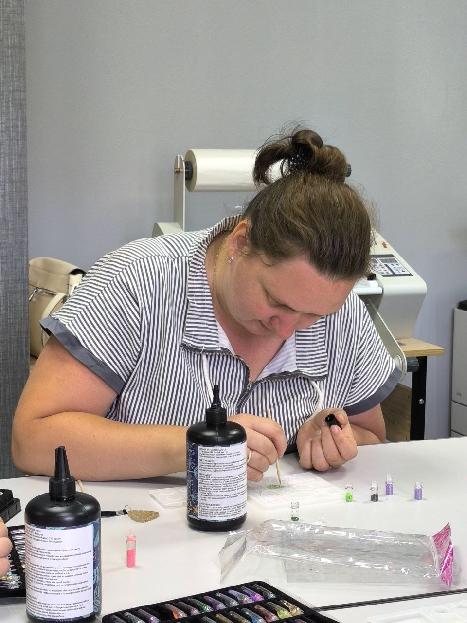 Участники погрузились в мир смолы, красок и фантазии. Начав с основ – правильного смешивания компонентов и техники безопасности – они постепенно перешли к более сложным приемам.