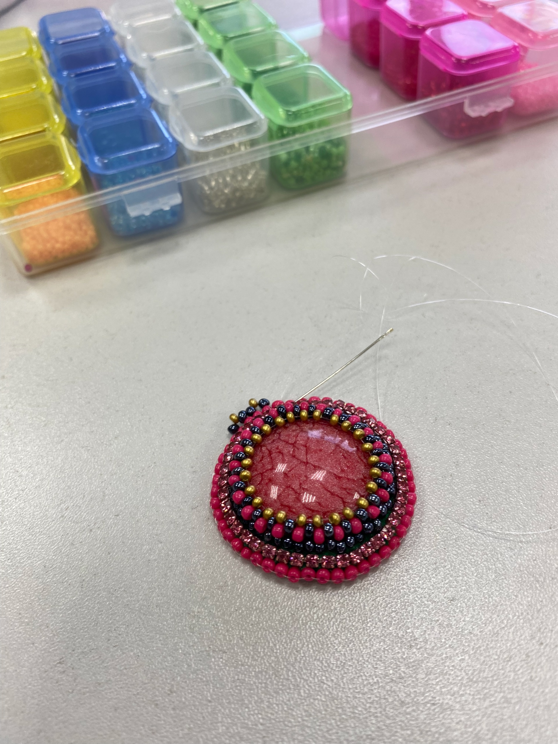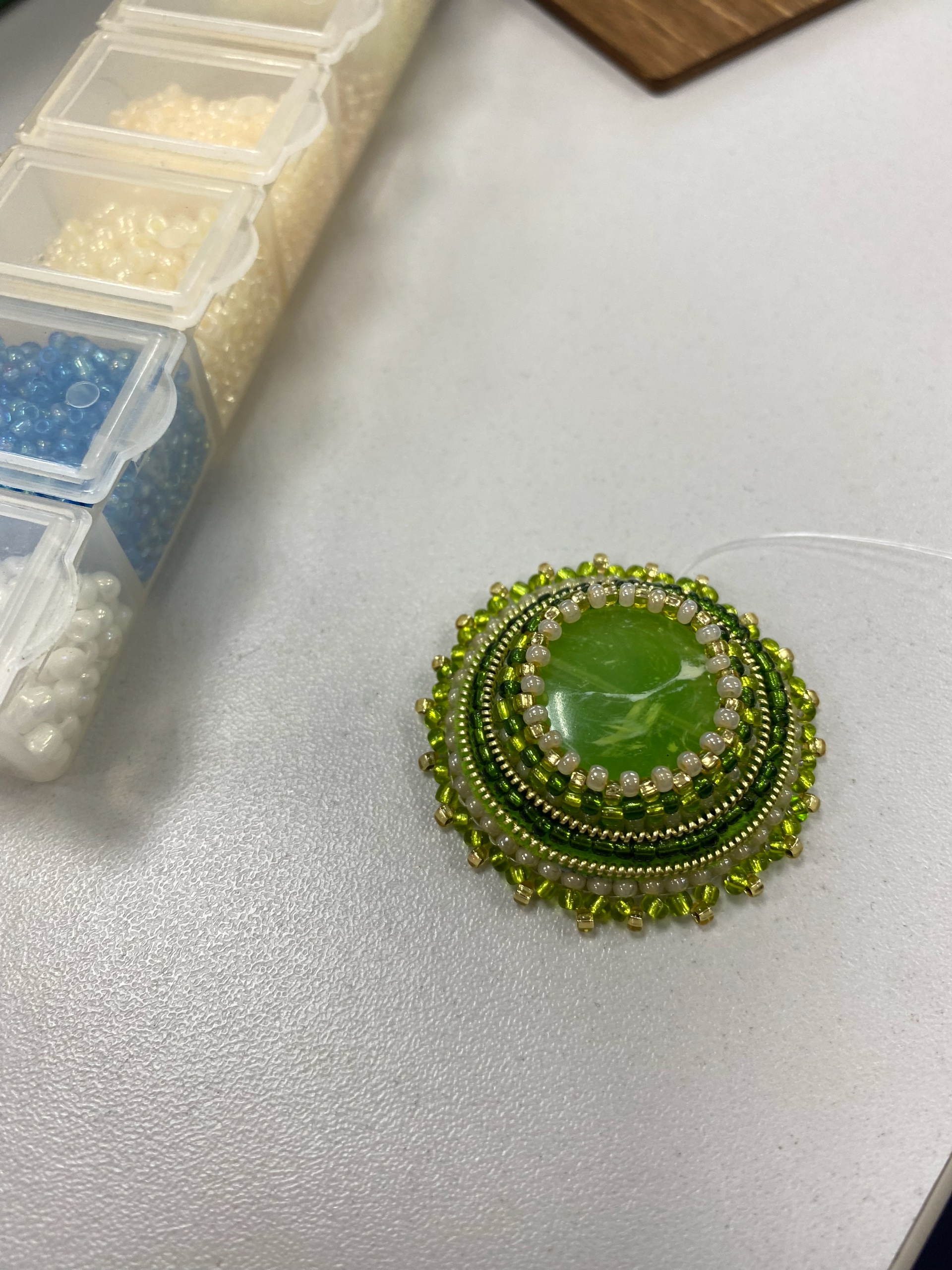В нашем уютном клубе "Ожерелье" произошло настоящее чудо! Рукодельницы завершили работу над потрясающей подвеской с кабашоном!