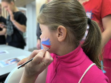 Особой популярностью пользовался аквагрим, позволявший каждому желающему почувствовать себя частью торжества, украсив лицо цветами российского флага.