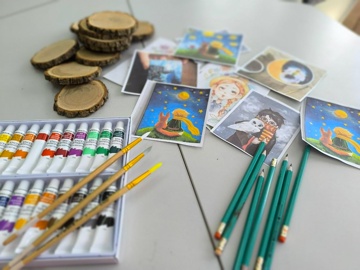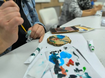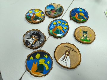 Использование спилов дерева в качестве холста добавило работам оригинальности и экологичности. Акриловые краски, благодаря своей яркости и устойчивости, позволили участникам воплотить самые смелые идеи.