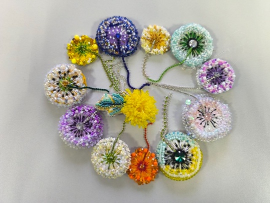 27 августа участницы клуба "Ожерелье" заканчивали работу над брошкой «Одуванчик».