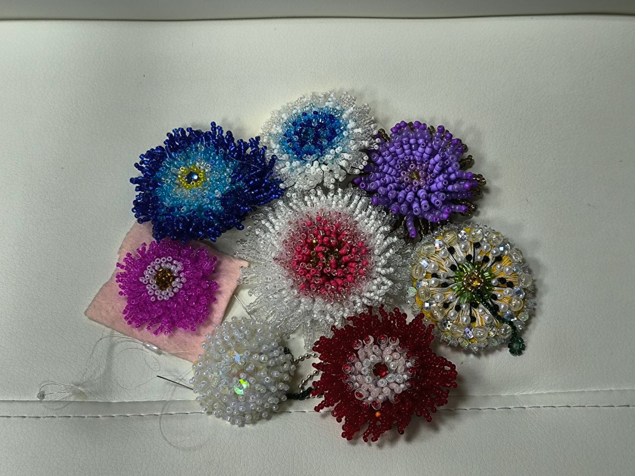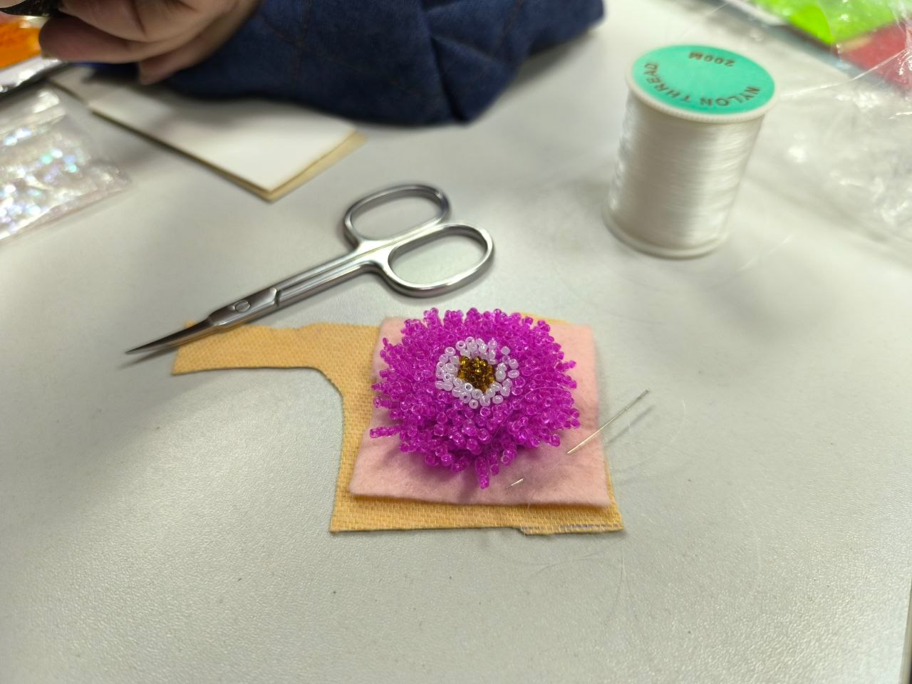 Последнее занятие клуба "Ожерелье" работы над вышивкой броши "Астра".