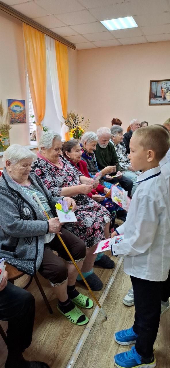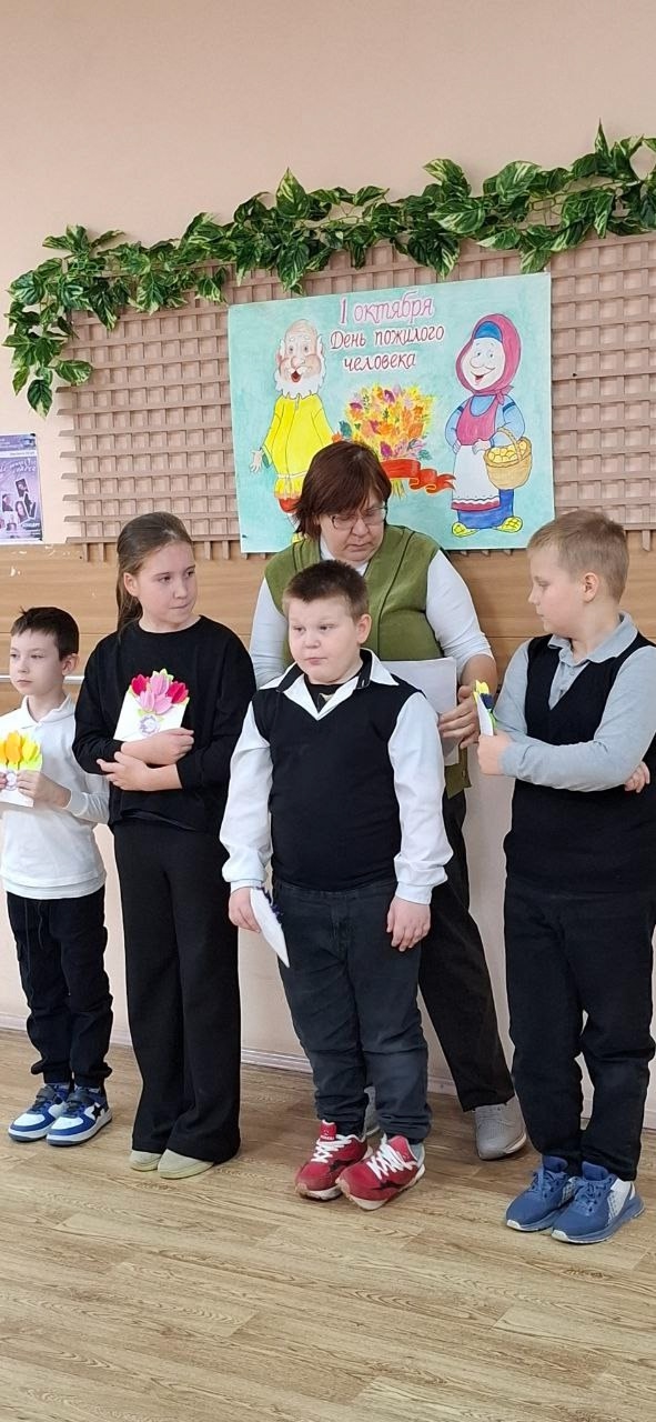 В этот теплый осенний день педагоги и учащиеся начальных классов МБОУ СШ №2 ОШ№4 пришли поздравить пожилых жителей и подарить им радость и праздничное настроение.