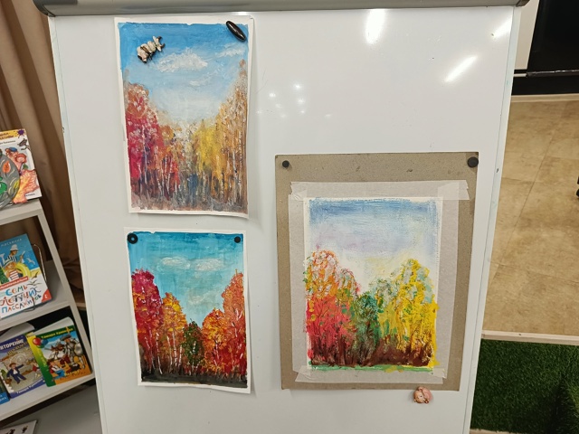 Когда из – под кисти «рождается» что-то уникальное, человек понимает, какой у него потенциал для саморазвития.???? Красивая осенняя мелодия побудила каждого присутствующего «включить» воображение и, используя специальную технику живописи, попробовать воссоздать очаровательный осенний сельский пейзаж.