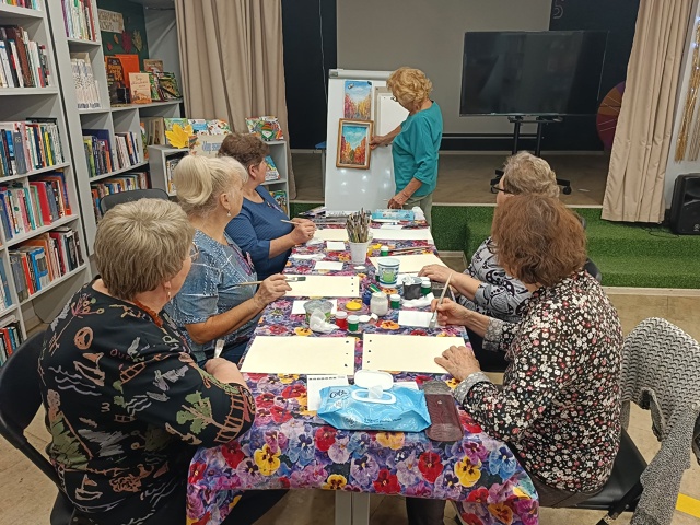 В модельной библиотеке мкр. Каргополь-2 продолжает свою деятельность клуб «ВАСИЛИСЫ». 2 октября у нас прошёл мастер- класс по рисованию акварелью «Уж небо осенью дышало…».