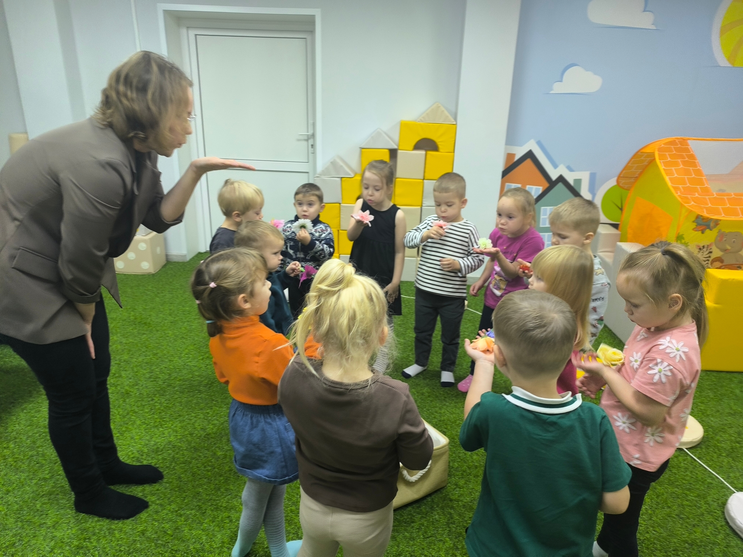 Также в ходе занятия дети учились сравнивать предметы по определенным характеристикам и параметрам. Цветы бывают разными: одни большие, другие маленькие, одни невесомые и легко сдуваются или подкидываются, а другие - тяжелые. Это помогло развить наблюдательность и способность анализировать различия.
