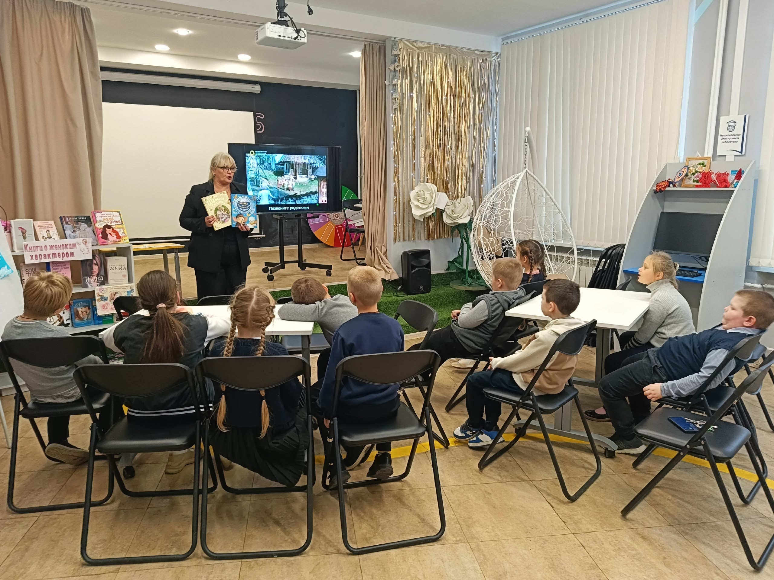 Ученики отвечали на вопросы по сказкам, где главными героинями были мамы.