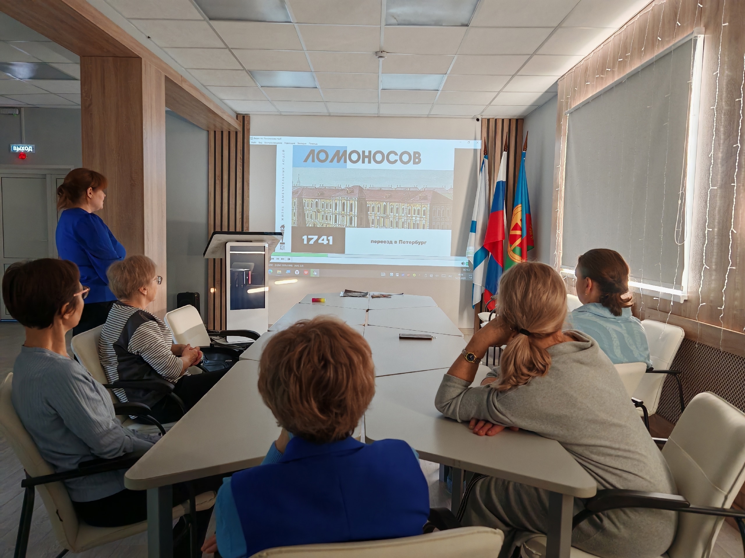 В рамках клуба "Вдохновение" специалисты библиотеки провели мероприятие "День с Ломоносовым", посвященное 314-летию со дня рождения великого русского ученого, поэта и просветителя. Целью встречи стало расширение знаний участников клуба о многогранной личности Михаила Васильевича и его вкладе в развитие российской науки и культуры.