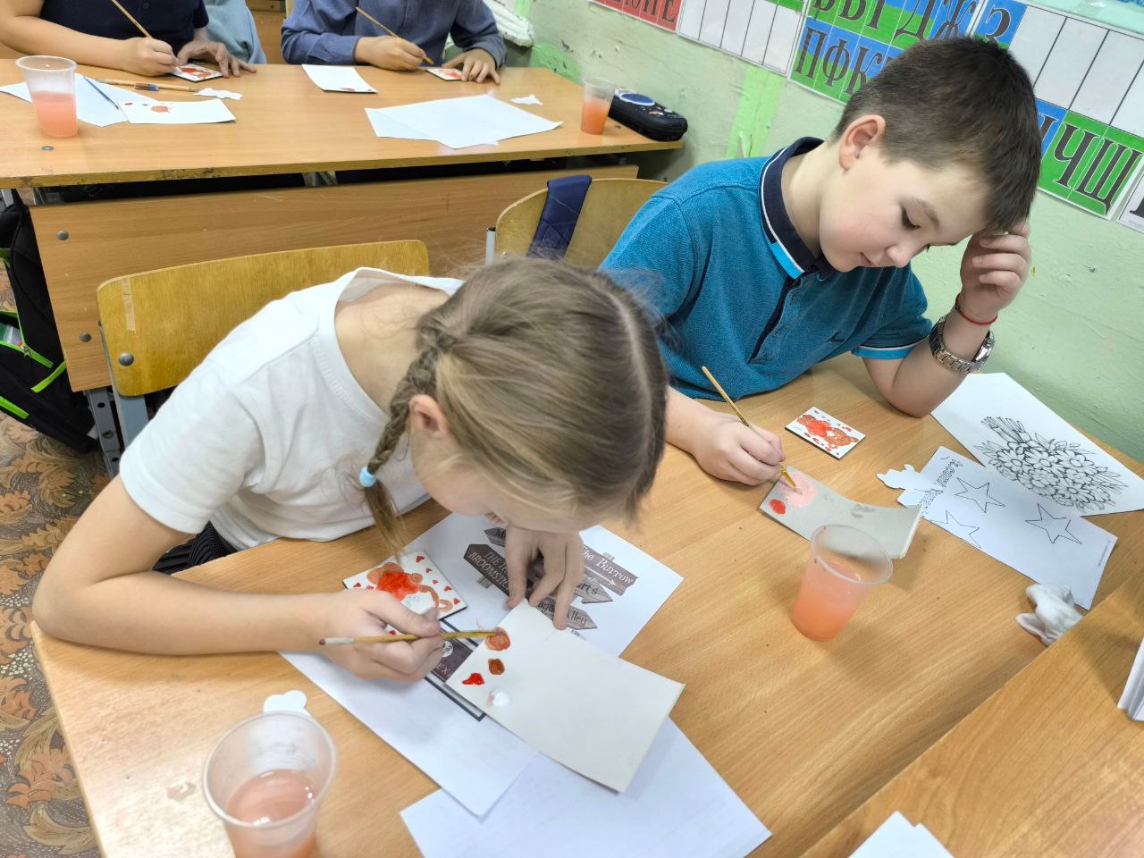 Сегодня сотрудники центральной библиотеки провели мастер-касс для ребят 3 класса школы №2, по рисованию на маленьких холстах с магнитом.