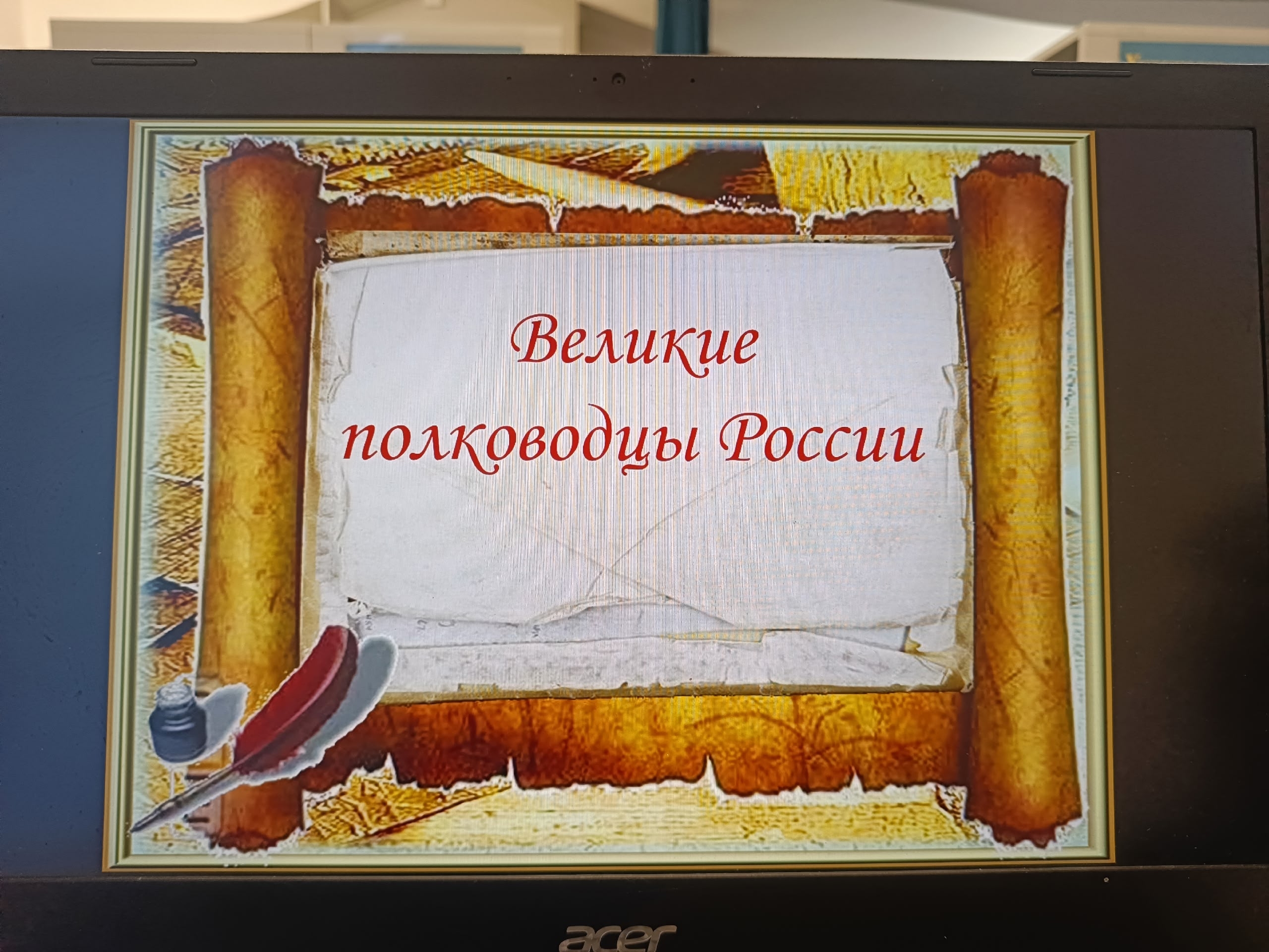 Далее была показана презентация «Полководцы России: от древности до современности» с портретами и биографиями выдающихся военачальников с хронологическим обзором ключевых сражений и побед, сформировавших историю страны.
