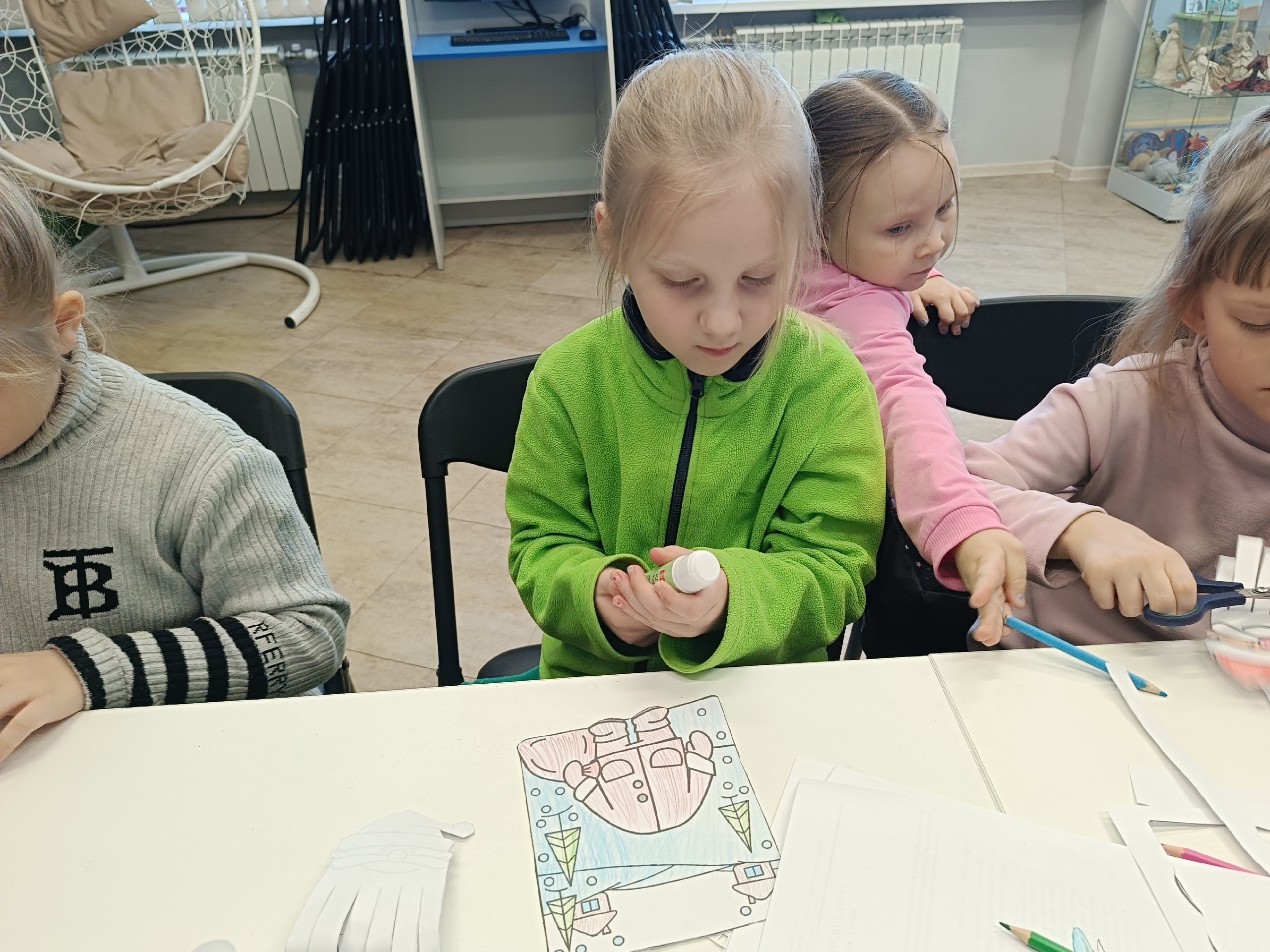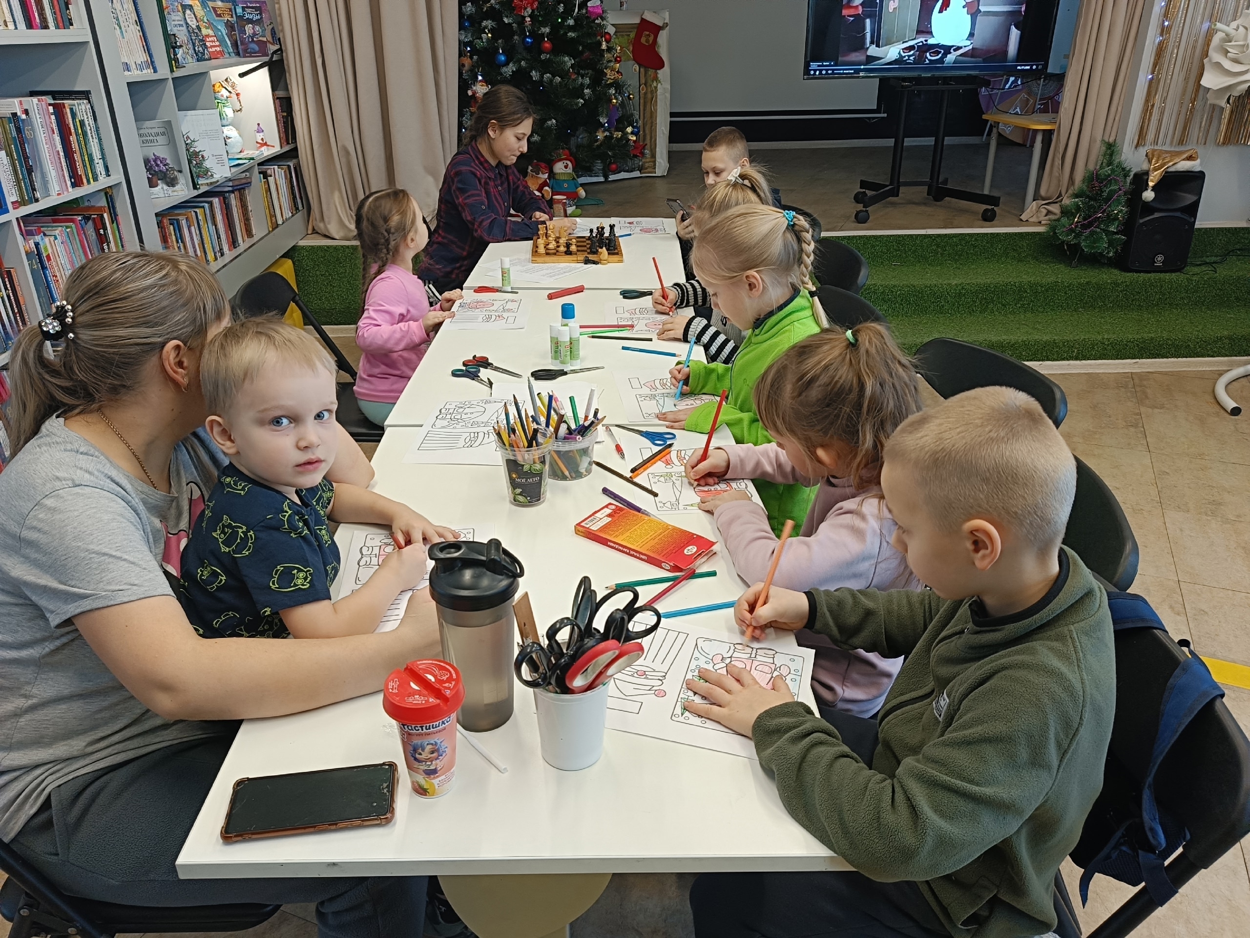 В преддверии новогодних праздников в детском клубе при библиотеке мкр. Каргополь-2 прошёл увлекательный мастер‑класс «Волшебство своими руками». Ребята создали очаровательные поделки — объёмного Деда Мороза в технике бумагопластики и сверкающие снежинки из синельной проволоки.