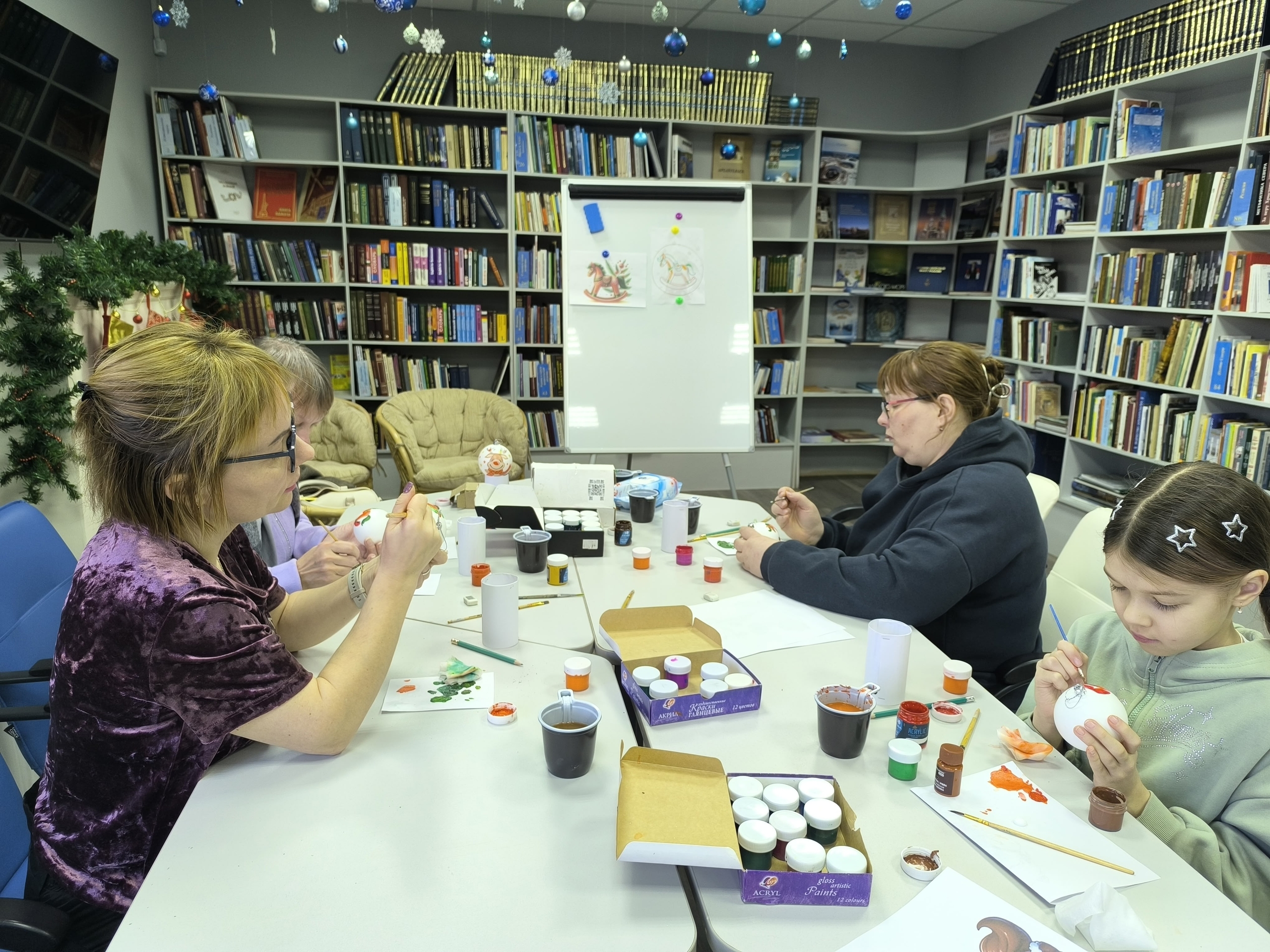 Сегодня в библиотеке состоялся мастер-класс по росписи новогодних шаров. Мероприятие, посвященное грядущему 2026 году, символом которого является Огненный Конь, вызвало интерес у посетителей всех возрастов.