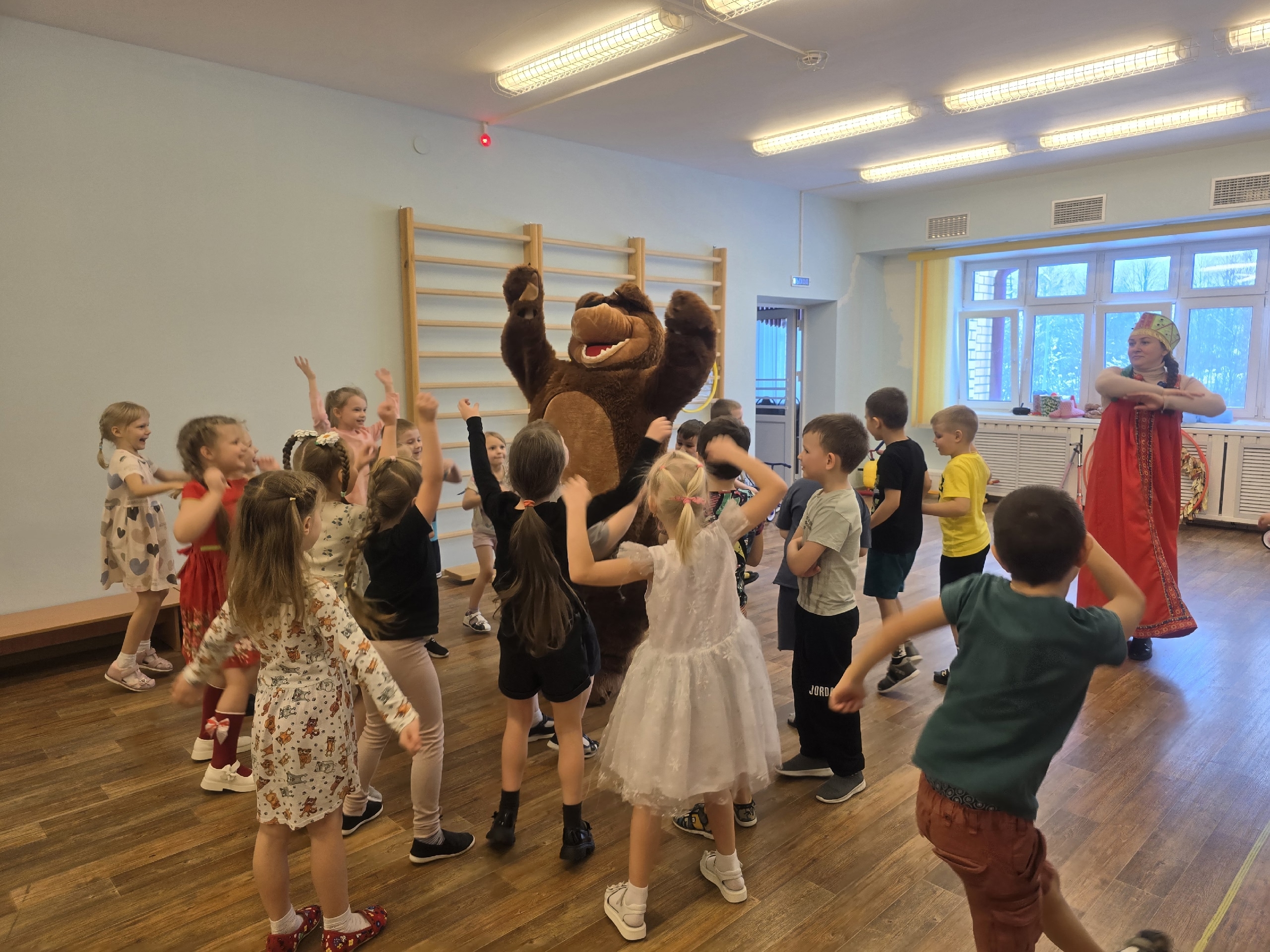 Ребята погрузились в атмосферу настоящего русского праздника. Дети водили хороводы, играли в народные игры, соревновались в перетягивании каната. Было очень жарко, хотя на улице лежит снег. А все потому, что ребята проводили Зимушку и встретили Весну так, как положено - играми, смехом и песнями!