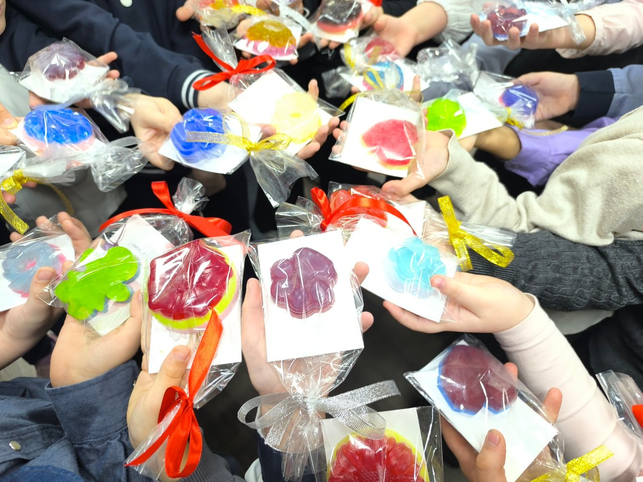 У каждого получился уникальный, сделанный с душой фигурный кусочек мыла — не просто сувенир, а эксклюзивный подарок для самых дорогих мам к 8 Марта!
